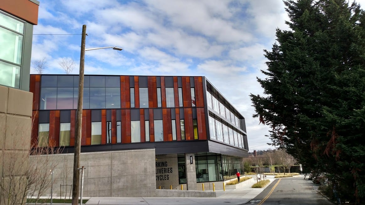 Wallingford is booming around Gas Works Park. AMLI Partners recently opened twin apartment buildings with 239 units, and the big Northedge office building (pictured above) is mostly completed and has been filling up quickly. Rapidly-growing data visualization software company Tableau rented up the entire office building and has been moving more people over from its Fremont offices, with 500 more expected soon. Plus, a month ago a new cafe called Acadia opened up in the corner of the building at 1651 N 34th Street, which is across the street from Essential Baking.