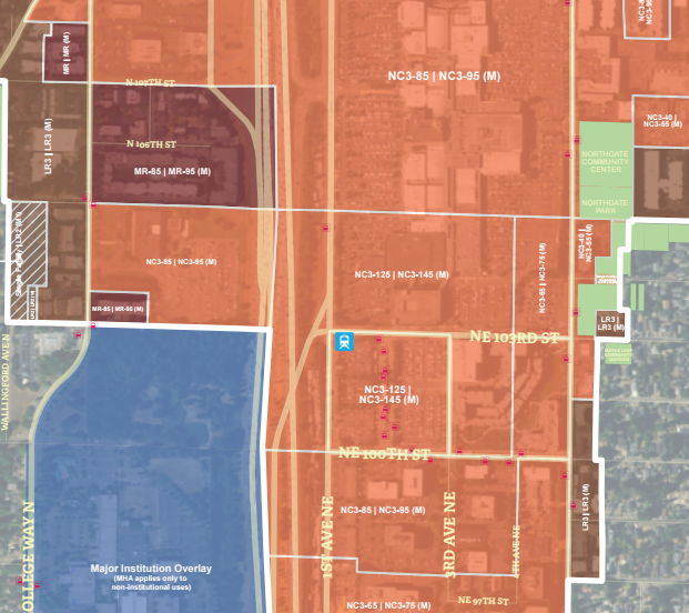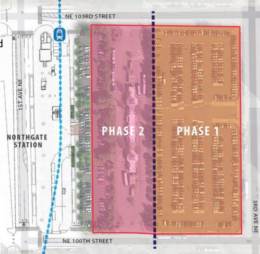 The lots are zoned Neighborhood Commercial-125 with a height limit of 125 feet, but King County Metro said it could go to 240-foot zoning under a rezone. The two phases should proceed with the first going in 2018 with the Sound Transit garage opening, according to King County Metro’s presentation. Phase two is anticipated in 2021 along with the opening of Northgate Station, keeping the bus terminal in place until its replacement is fully operational. King County and City of Seattle are negotiating a Development Agreement right now with the councils weighing in later this spring and a Request For Proposals (RFP) going out to developers this fall.