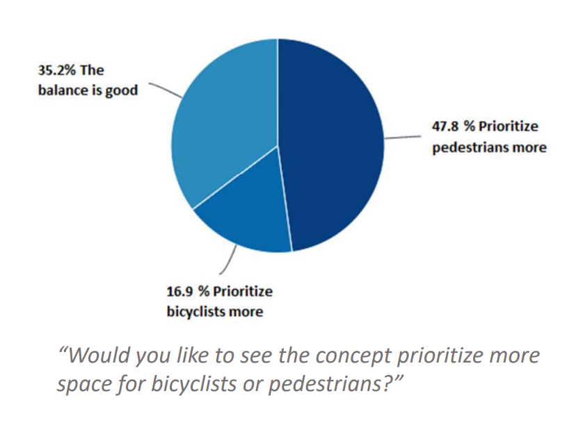 After nearly 95% of poll respondents told the city that the design of Bell Street should prioritize modes that aren’t driving early this year, a follow-up poll found around two-thirds of people still thought the city should go further in allocating space away from vehicles, with nearly half wanting more space for pedestrians. The proposed design retains one approximately 12-foot travel lane on the two blocks between Elliott Avenue and First Avenue, with a two-way cycle track along the south side of the street. Those two blocks will be the only separated bike facility that directly connects to the bike lanes on the brand-new Elliott Way roadway between Belltown and the waterfront.
