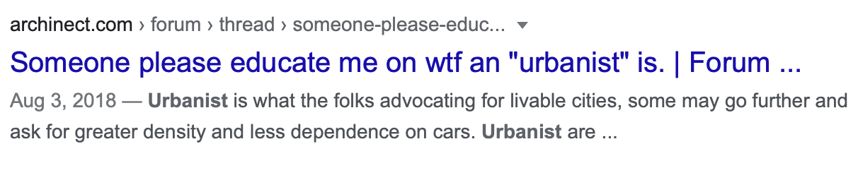 Many of us may be assuming that who or what we think of when we say or hear “urbanist” is what others think of–that we all share in the same stock images. It’s worth marking what those shared stock images are, and why the identity seems to coalesce around a particular set of behaviors and attitudes regarding the city.