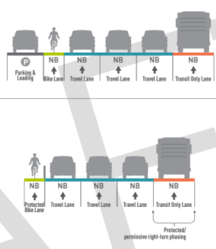 Every Downtown cyclist knows that north-south routes are not the main problem with Downtown travel: east-west is the issue. I did not address the east-west proposals last week when running through the north-south options for two reasons: the transit aspect is clearly secondary on the east west corridors in the proposal, and the ideas so clearly demonstrate the disconnect on Vision Zero that it is impossible to separate the two.
