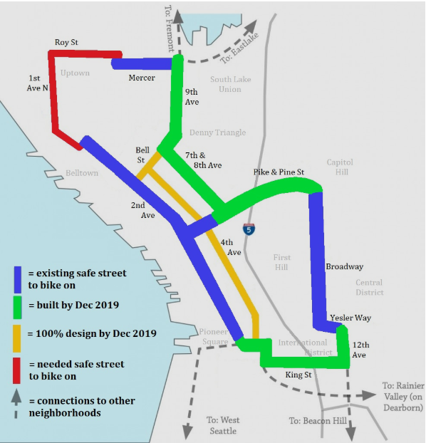 “Seattle is running out of space. Every person biking, walking, or using transit is a person not taking a car,” said Richard Smith, Executive Director of Cascade Bicycle Club. “To lead our city through the challenge at hand, it’s going to take prioritization. It starts with building the approved and funded Basic Bike Network following the timeline laid out by City Council.”