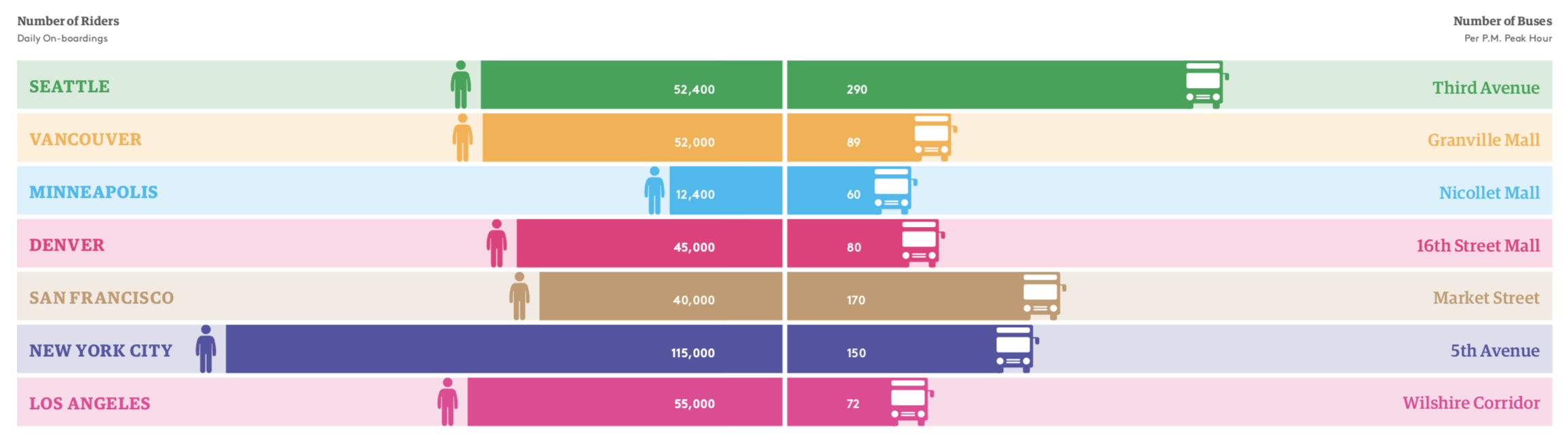In contrast, a Third Avenue streetcar route would provide far fewer benefits, not creating a new way to navigate the steep hill separating the waterfront from the heart of downtown. It doesn’t expand how many Seattleites would live or work within a short walk of frequent transit, since it doubles down an already transit-rich corridor instead of pioneering a new one. A Third Avenue streetcar would get gummed up in bus traffic and fail to boost transit speed and reliability as much as dedicated First Avenue lanes.