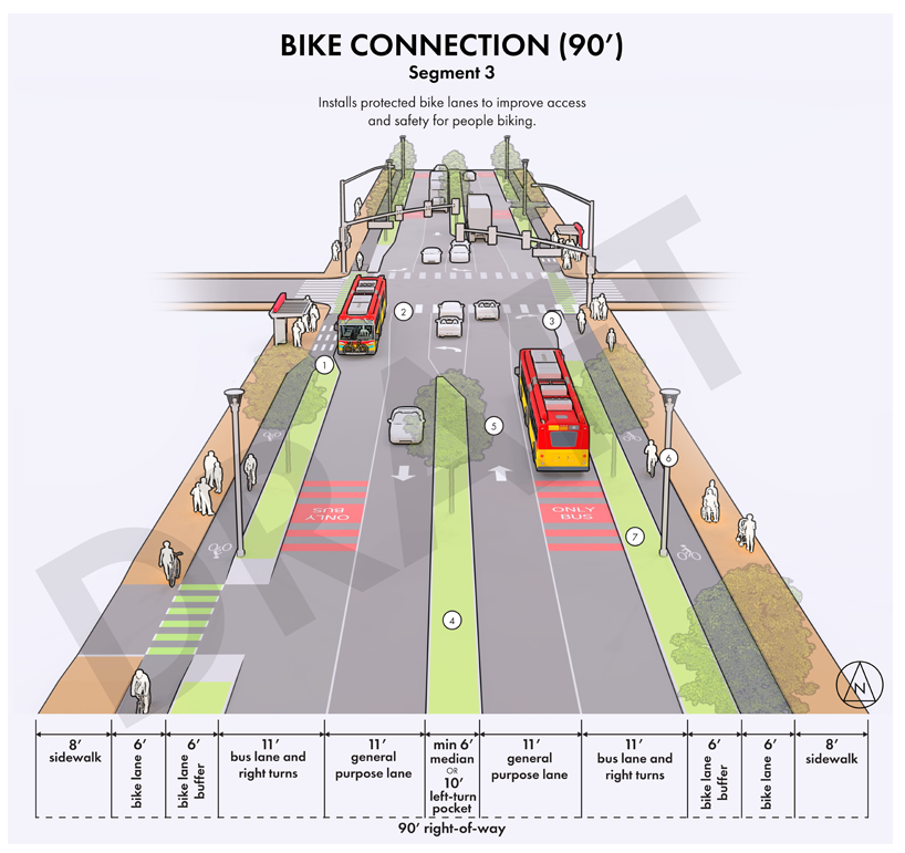 Streets like Aurora Avenue are getting proposals to improve safety and livability. If we plant street trees along with sidewalk improvements and the protected bicycle network we desperately need, we could add another 100 acres of tree canopy coverage across 20 miles of road. The trees would be pleasant additions to our loud, busy streets — places Mayor Bruce Harrell’s One Seattle growth plan is targeting for housing. These trees would also offer safety for bicyclists and pedestrians, creating nice buffers between people and cars.