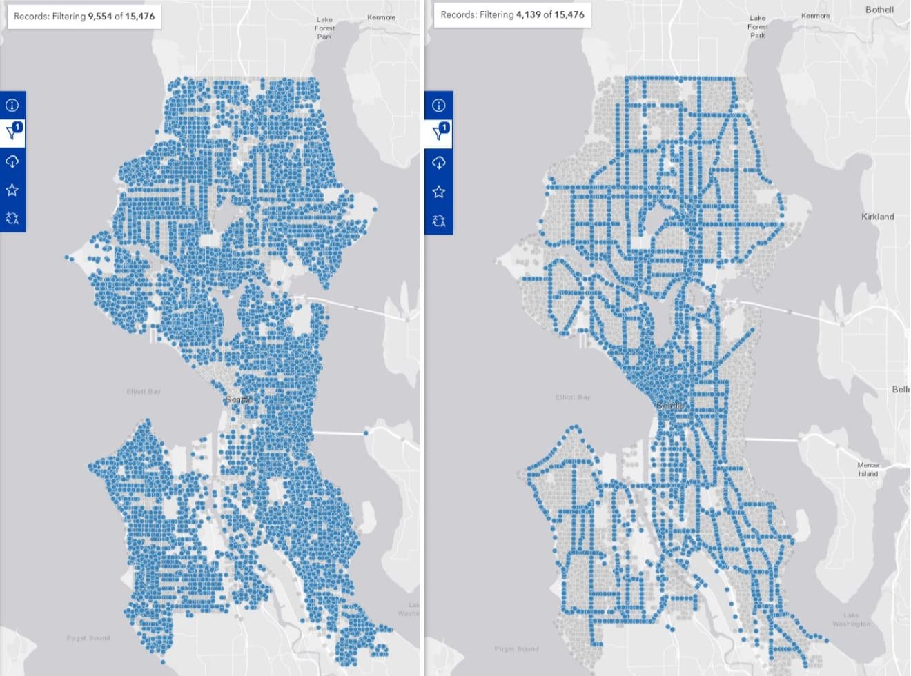 In contrast, replacing pavement with trees would absorb stormwater runoff rather than generating it, turning Seattle into a “sponge city.” This has the added benefit of decreasing the need for costly sewer upgrades and helping Seattle meet the federal consent decree requiring the city reduce combined sewer outflows into Puget Sound.