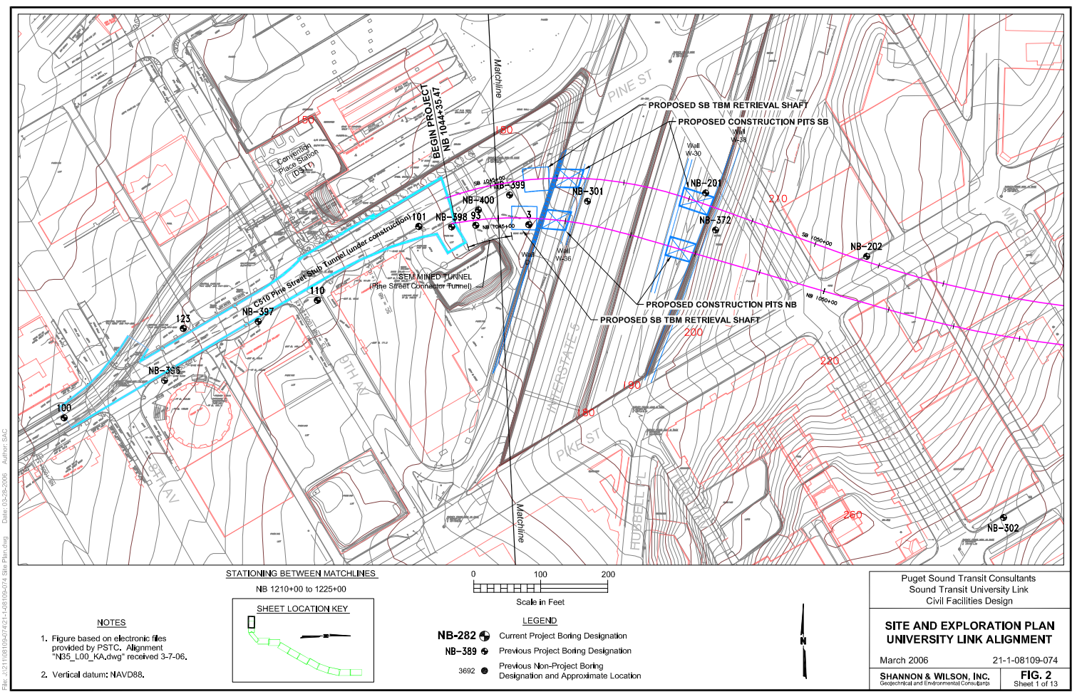 As illustrated above, a regular, non-flying junction here would likely be feasible to build. Furthermore, the property at the intersection of Pine Street and 8th Avenue currently contains a parking lot, allowing for a possible southern TBM retrieval site at the end of a proposed truncated BLE tunnel.
