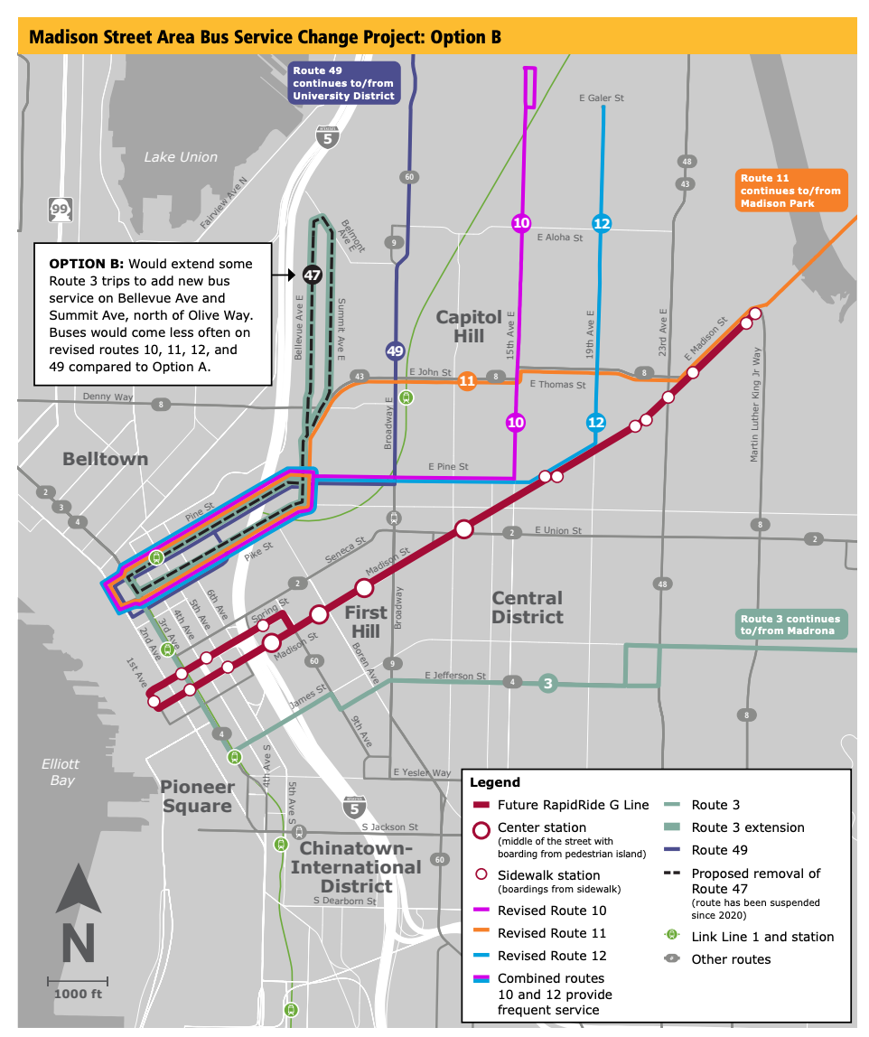 King County Metro recently unveiled its final proposal for a bus restructure in parts of North Seattle and North King County as well as a second round bus restructure proposal for Capitol Hill and First Hill. Those efforts are meant to complement the Lynnwood Link Extension and RapidRide G Line opening in 2024. The problem with them, however, is that the restructures are sacrificing local bus service to support new high capacity transit services instead of building upon the local bus network to support them.