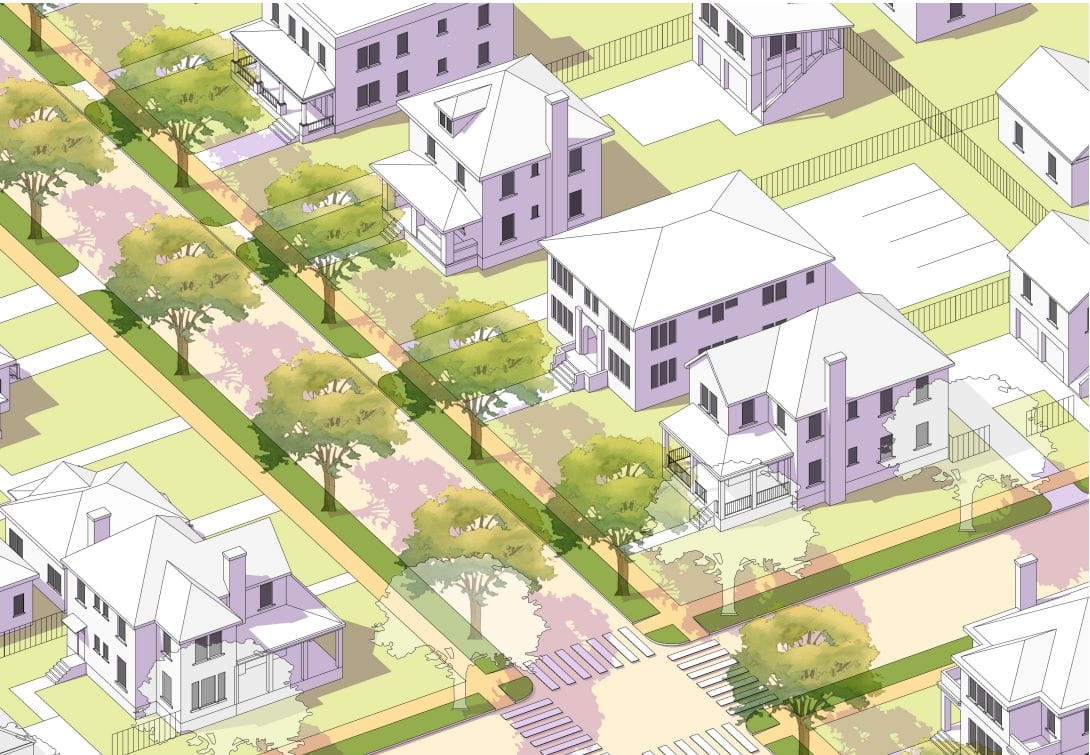 Let’s reduce every lot setback to three feet on all sides, legalize 50% lot coverage for the building footprint, and maintain a Neighborhood Residential zoning height of 30 feet. It would give you the flexibility to place your building or buildings across 85% of your site, meaning you can avoid knocking over that exceptional tree since there is plenty of room to work around it – by design. It will also give the residents enough space for a garden, a playground, or a communal Pickle Ball court. Today, architects spend too many hours ensuring their designs conform with overly specific code requirements instead of using their skill and design-thinking to find inventive ways to enhance the livability and sustainability of their projects.