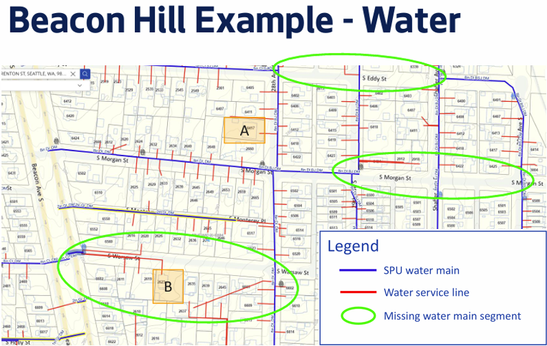 In a May 14th presentation to the Seattle City Council, Seattle Public Utilities (SPU) revealed that 400 miles of city streets lack water mains. Without a water main, new water service to support construction is denied by SPU.