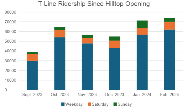 With the six-month anniversary of the Hilltop extension of Tacoma’s T Line streetcar, there is much to reflect on in the few months since the opening. The T Line (then known as Tacoma Link) began service 20 years ago. With the addition of seven new stops, the T Line has seen a jump in ridership since its opening in September of last year, with ridership hitting new highs based on Sound Transit’s ridership dashboard.