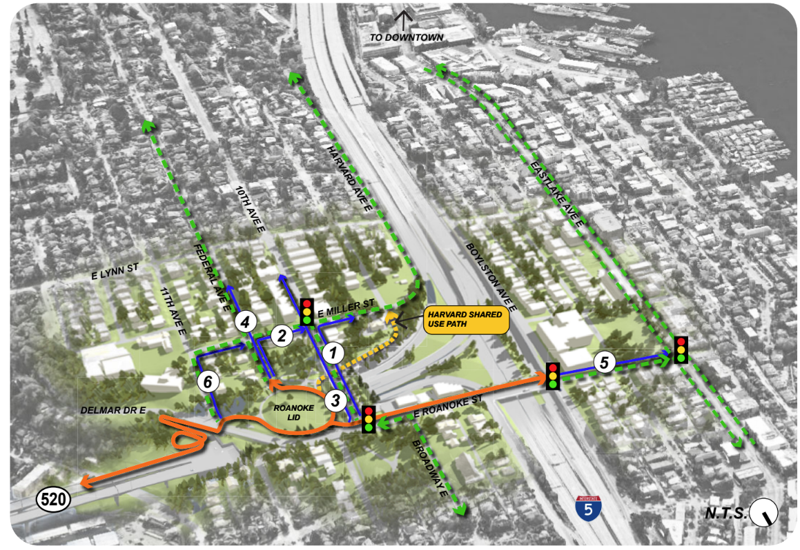 WSDOT bills the Roanoke Lid as a way to incorporate a large green space where a loud, polluting highway broke apart the surrounding neighborhoods. In their bid to repair some of the damage, the department agreed the Harvard Connection would provide greater accessibility for people who use wheelchairs and other assistive mobility devices — a community of people who are often left out of conversations like these. This isn’t just a safety and climate issue, it’s an equity one.