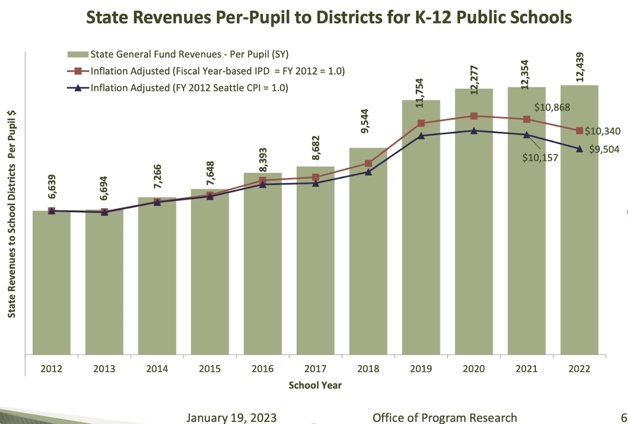 At the core of the crisis facing every school in Washington is the state legislature’s ongoing refusal to amply fund public education. In the 2012 McCleary case, the Washington Supreme Court ruled that the state legislature needed to spend more money on K-12 public education to comply with the state constitution. The legislature dragged its feet and was held in contempt for five years, until 2017 when the legislature adopted a new education funding system.