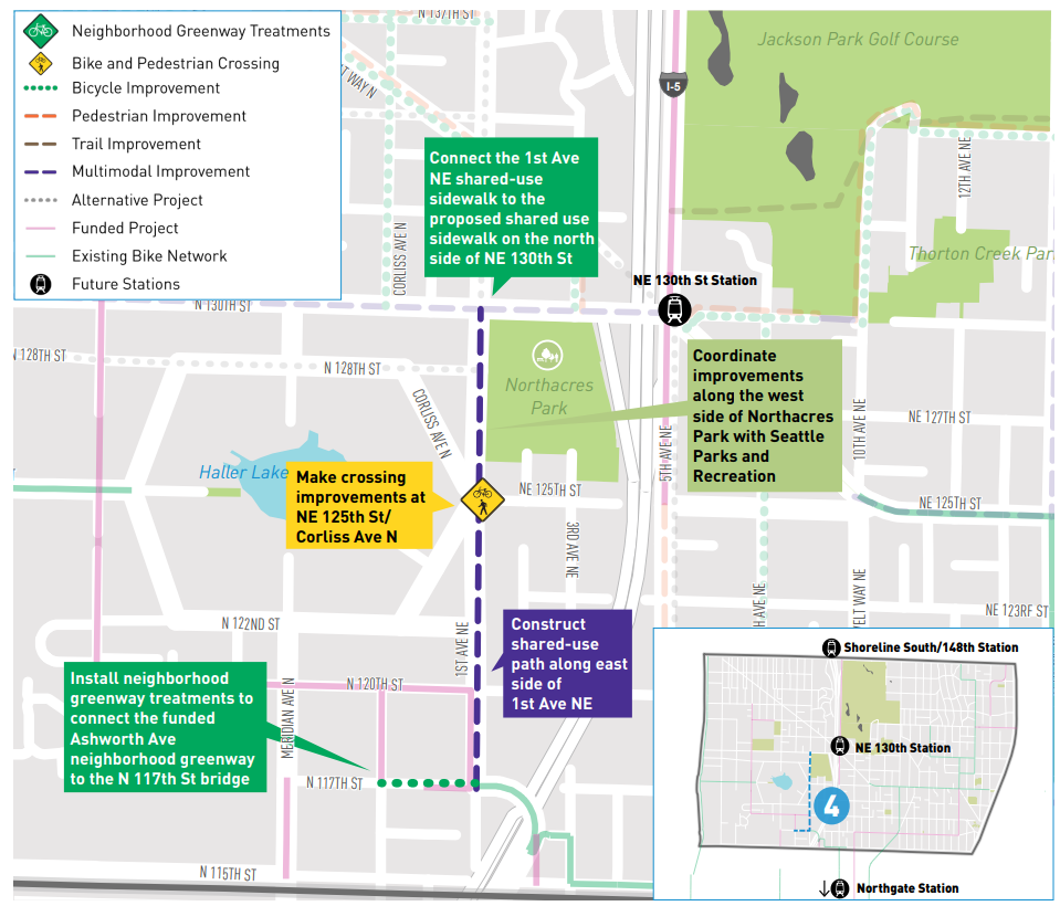 Diane Walsh, a policy specialist with SDOT, told the school traffic safety committee that the shortfall would likely mean a number of projects within the department would be delayed. She specifically cited a planned $4 million path along 1st Avenue NE between Northgate Elementary School and N 130th Street near the future light rail station on the other side of I-5. The project is part of an overall effort to improve access to that isolated station, aided by a federal grant, and she said it was set to be delayed by two years due to the shortfall. It’s now unclear whether the path will open by the time the light rail station opens in 2026.