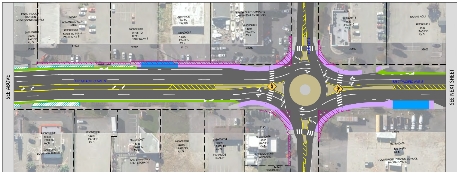 WSDOT pushed for the inclusion of a number of roundabouts in the proposed design to ensure optimal vehicle flow. In the presentation this week, Pierce Transit cited traffic impact analysis work that the agency had to do to come to a consensus with state and local partners, which looked at theoretical vehicle delays in the corridor in 2030 and 2045. But backing away from creating high quality transit in the corridor because of potential traffic in the future is a surefire way to ensure that those projections come to pass.