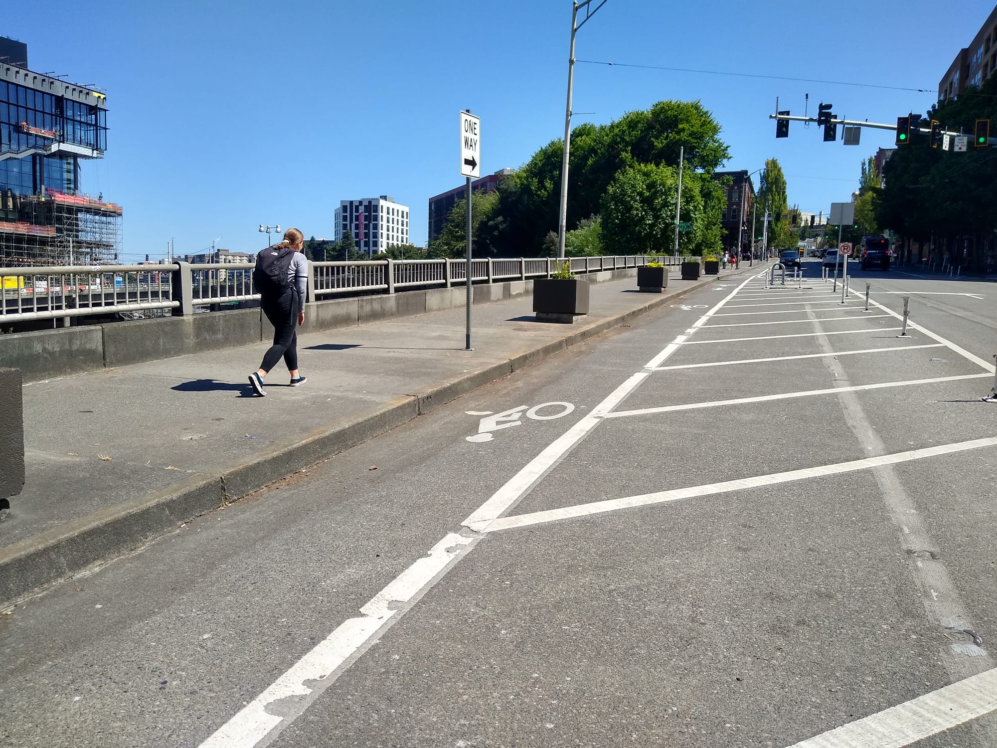 Obviously, this is a significant change from what was proposed in earlier iterations of the project, and a big step back. The improvements to the bridges over I-5 are a pivotal part of the project, and the Washington State Convention Center expansion is providing a large amount of money as a public benefit to be invested in improving unpleasant pinch points like this one. The final material isn’t completely determined yet, according to Bergerson: “The project team is committed to improving both pedestrian and bicycle facilities on the bridge and continues to explore ideas to accomplish this goal while respecting the weight limitations of the bridge structure.” But without being able to expand the sidewalk, it doesn’t look like the changes to the Pike Street overpass will accomplish the goals that were set out to be achieved with this project.