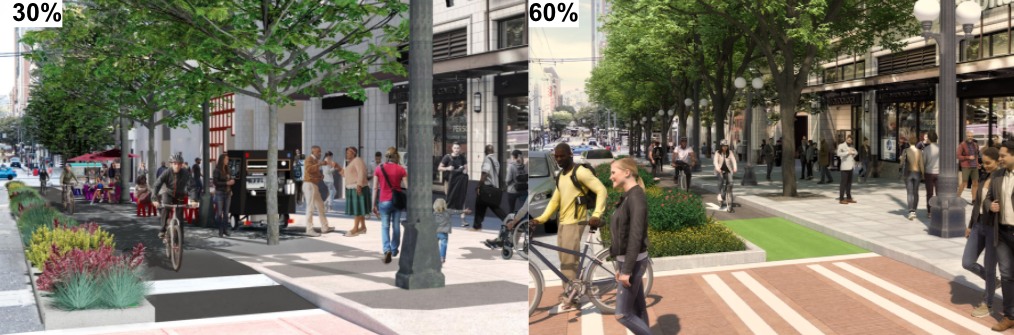 The Urbanist has obtained the latest set of designs, dated this summer at the 60% level of design completion, including updated renderings and a full map of the corridor. Several problematic steps backward shown in the latest update, combined with aspects that have been less-than-ideal all along, show a project straying from achieving its full vision, a dismaying fact given the project’s price tag and intended impact.