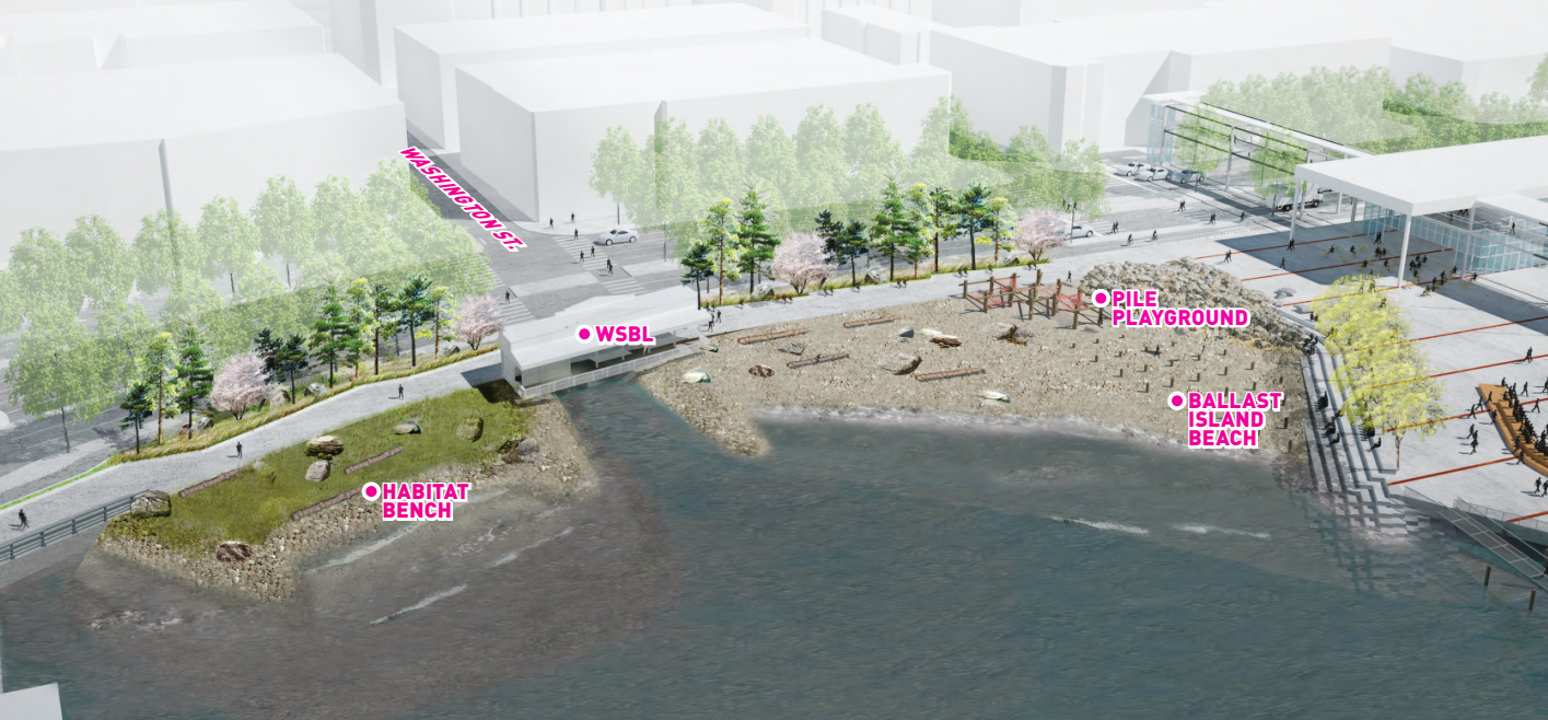 The City plans to keep the beach open through this summer, then close the beach so that the Washington State Department of Transportation (WSDOT), which owns the property, can install artwork in the space. By next spring, when it permanently reopens, the city plans to have selected a tenant for the adjacent Washington Street Landing Pergola building, which dates to 1920 and was restored in 2018. Adding a concessionaire to this stretch of the waterfront, combined with the new retail tenants that will be returning to the $467 million remodel of Colman Dock next door should provide significant activation to a stretch of the waterfront that hasn’t always had as much foot traffic as parts further north.
