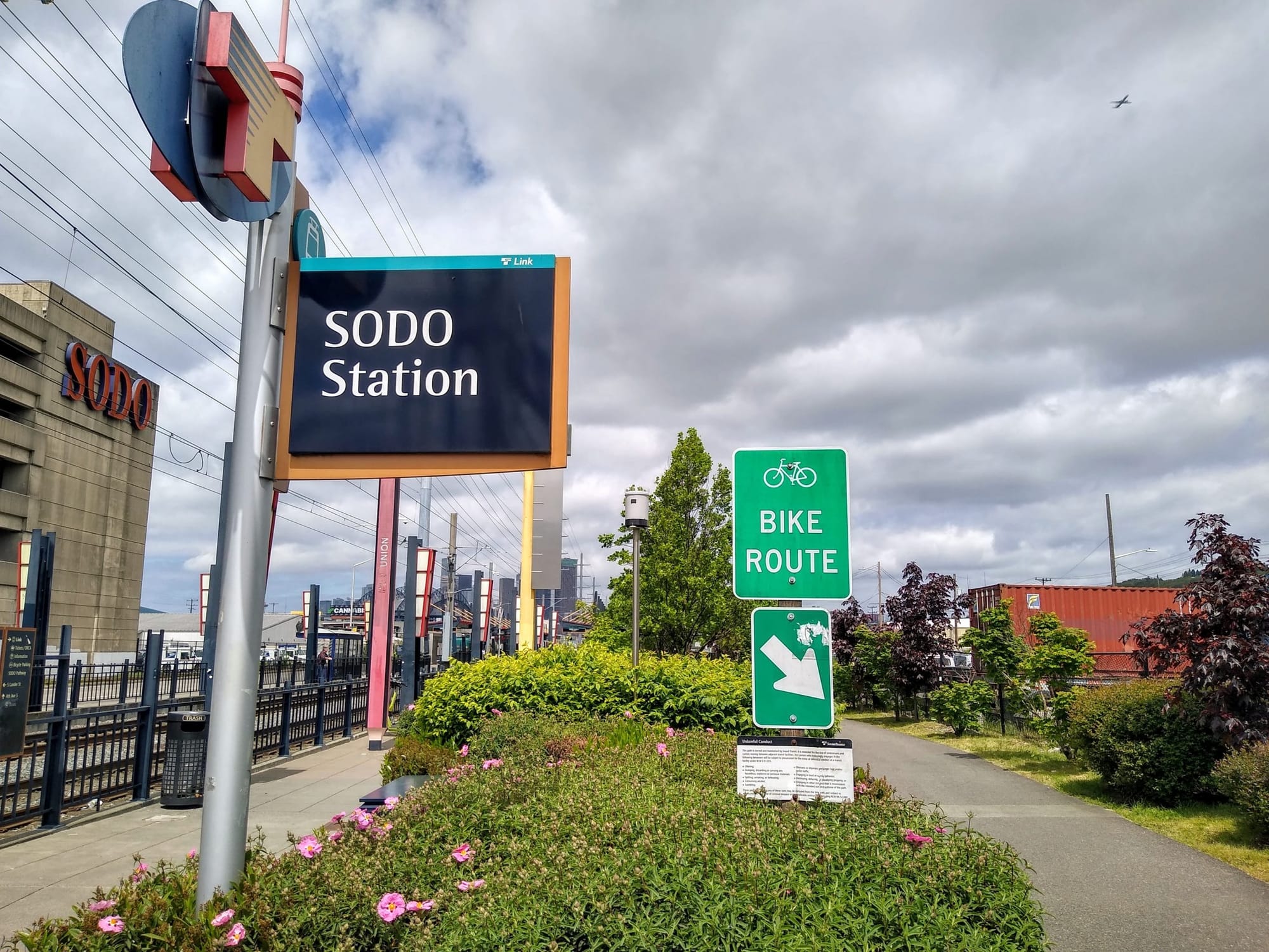 Some of the most dangerous roads in Seattle are all grouped together in the SoDo neighborhood, where heavy freight traffic serving industrial businesses and a network of wide streets form an area all-but-completely hostile to anyone not in a car. Sidewalks in SoDo are unpleasant places to be, and there is virtually no space allocated for people on bikes. Apart from the connection along East Marginal Way to the West Seattle Bridge trail, the only dedicated space to bike in SoDo is a multi-use path next to the Link light rail tracks, away from businesses and disconnected from any other facilities.