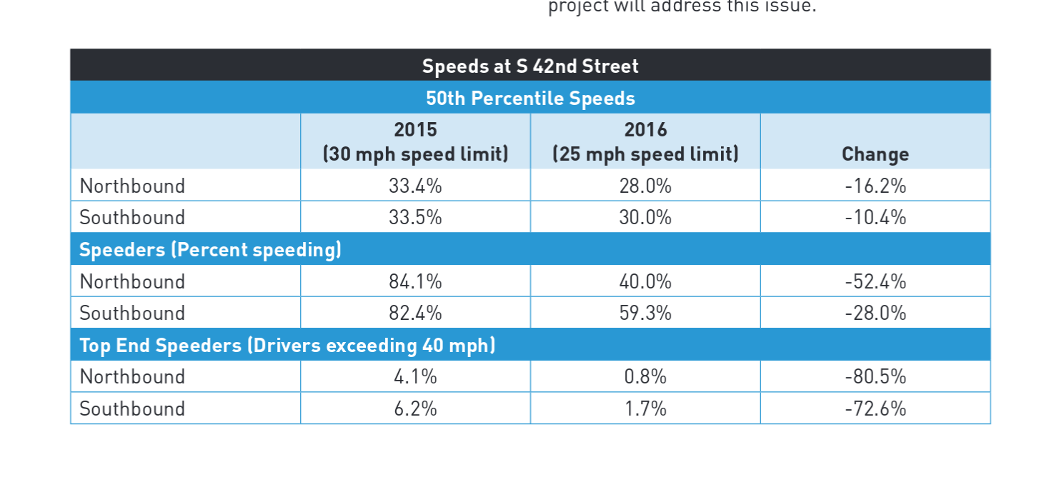 In theory, this sounds great–with a 25 mph speed limit, the median speed was 28-30 mph. However, this means that half of recorded vehicles were traveling at more than 5 mph over the speed limit. The 85th