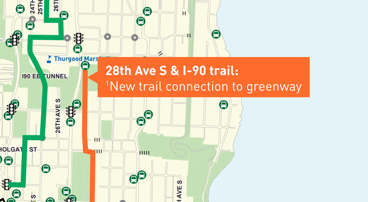 Earlier this month, the Seattle Department of Transportation (SDOT) started construction on a small stretch of multi-use pathway near I-90 that will have an oversized impact: It will finally connect the main neighborhood greenway throughout the Rainier Valley to the Mountains to Sound trail to Beacon Hill and across the lake to the Eastside.