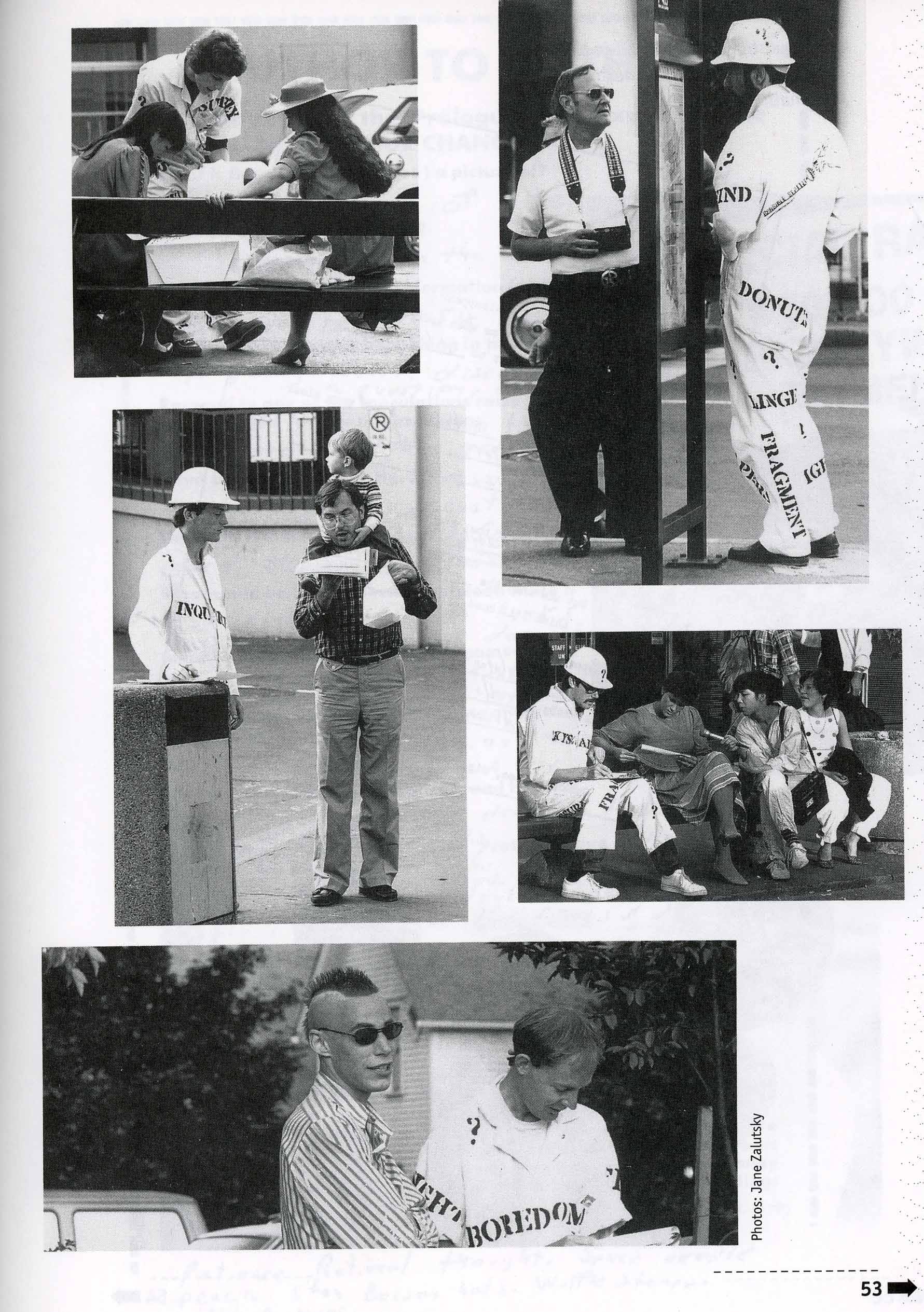 Part of the success of Invisible Seattle was the spectacle. Interviewers who donned hard hats adorned with question marks took to the streets and engaged passersby. The sense of mystery and intrigue permeated the work and propelled it on its way. For