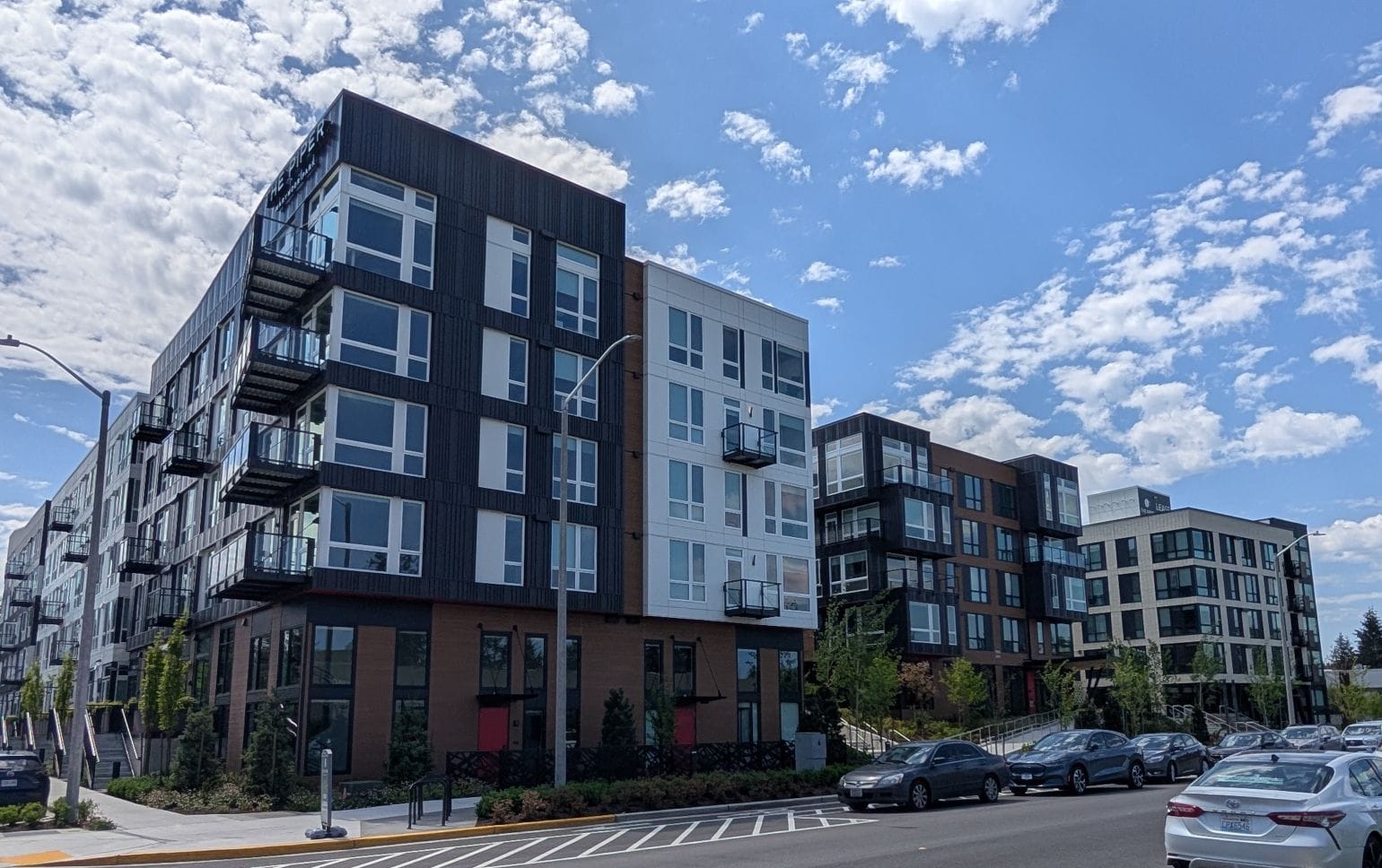 Ahead of the opening of the Marymoor Village light rail station this Saturday, a cluster of mid-rise residential development has been built in one of Redmond’s newest residential neighborhoods. Created as a growth hub in 2017, Marymoor Village center sits between Marymoor Park and busy Redmond Way. The center is a part of the larger Southeast Redmond neighborhood and shares much of the industrial character seen in the rest of the neighborhood.