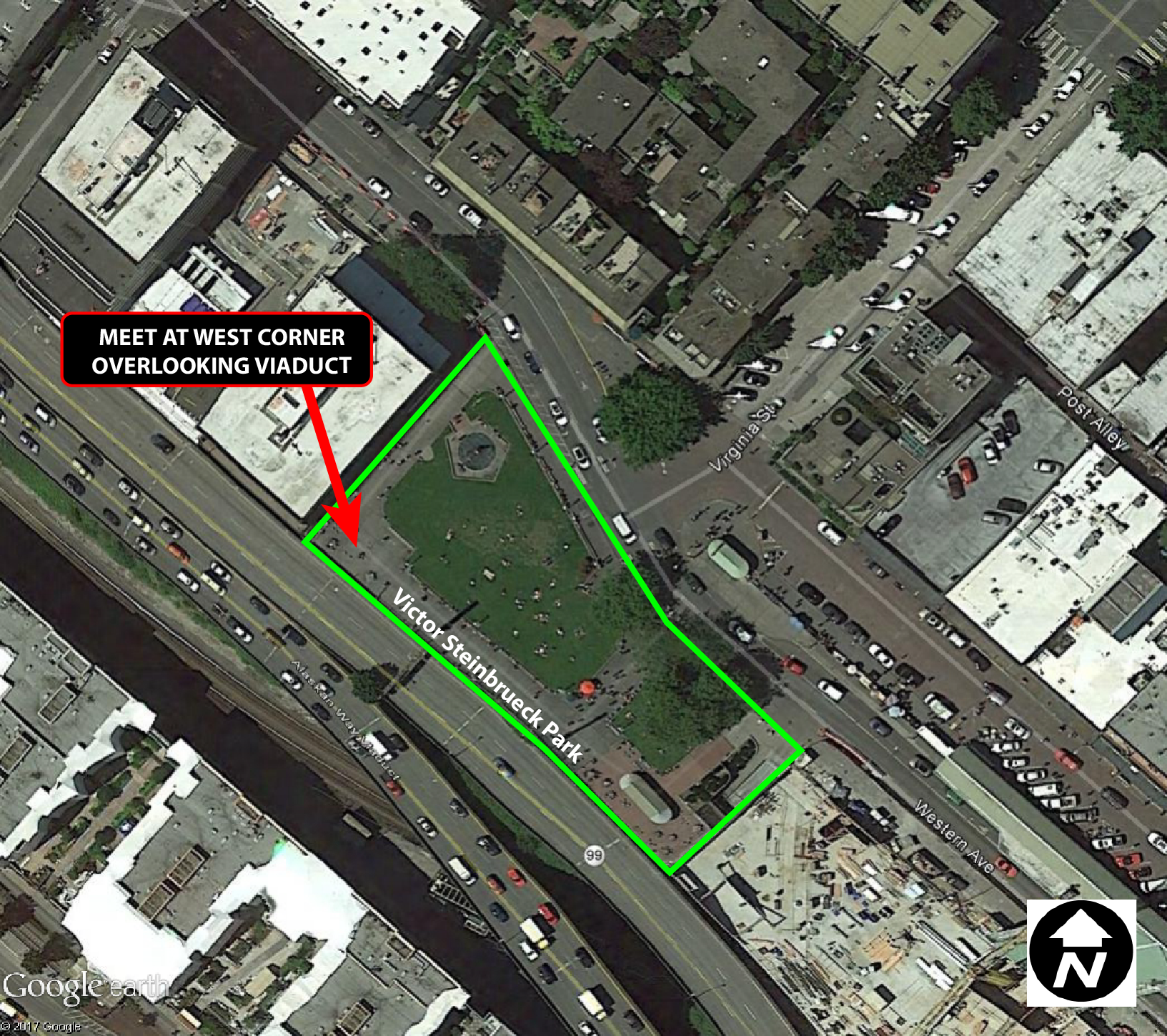 Meeting directions: We’ll meet at the west corner of Victor Steinbrueck Park, overlooking the Alaskan Way Viaduct (see map below)