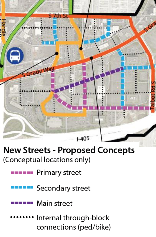 City officials have big visions for Rainier/Grady Junction, but proximity to I-405, parking mandates, and prescriptive development standards may hold the area back.