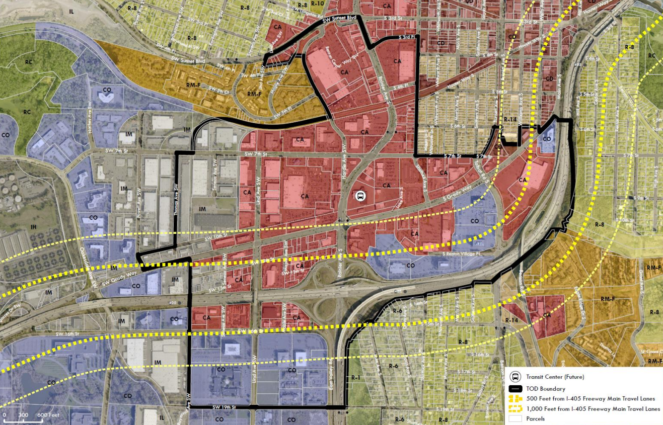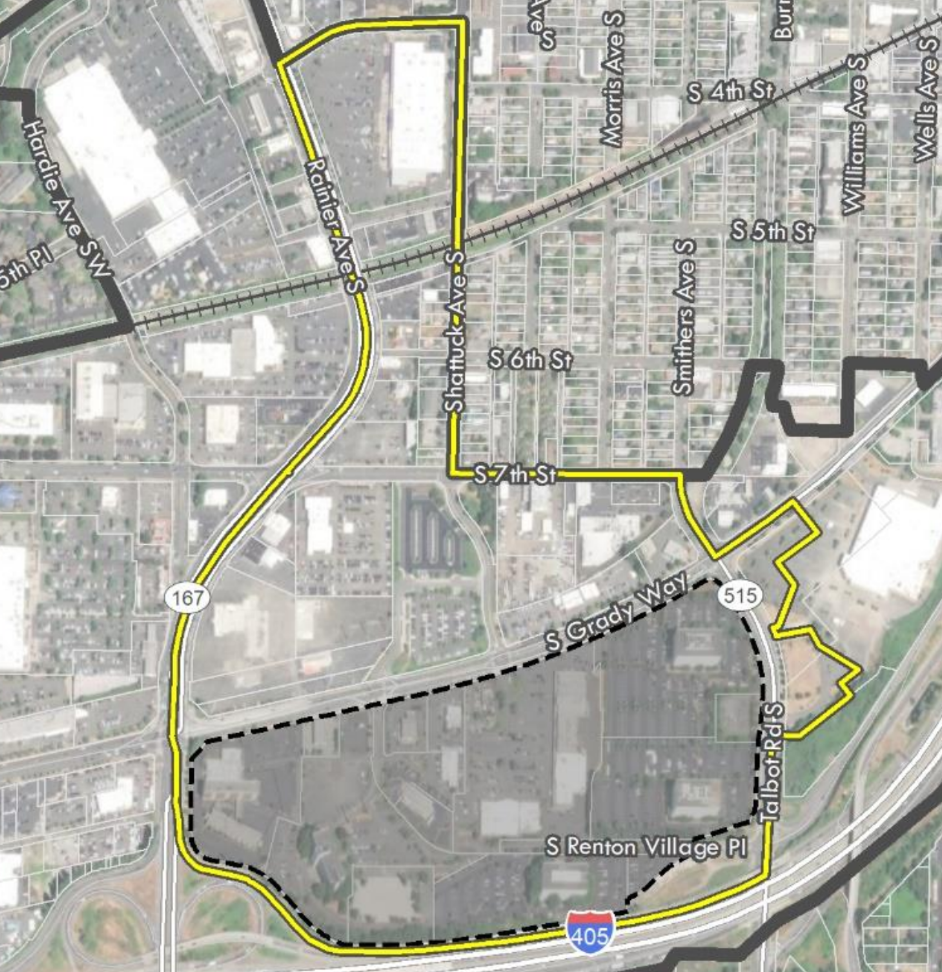 While some multimodal improvements are planned, the headwinds Renton will face in trying to create a truly transit-oriented neighborhood where very little pedestrian infrastructure currently exists will be considerable. The area being eyed is tucked into the bend of I-405 in South Renton, at the crossroads of multiple state highways.