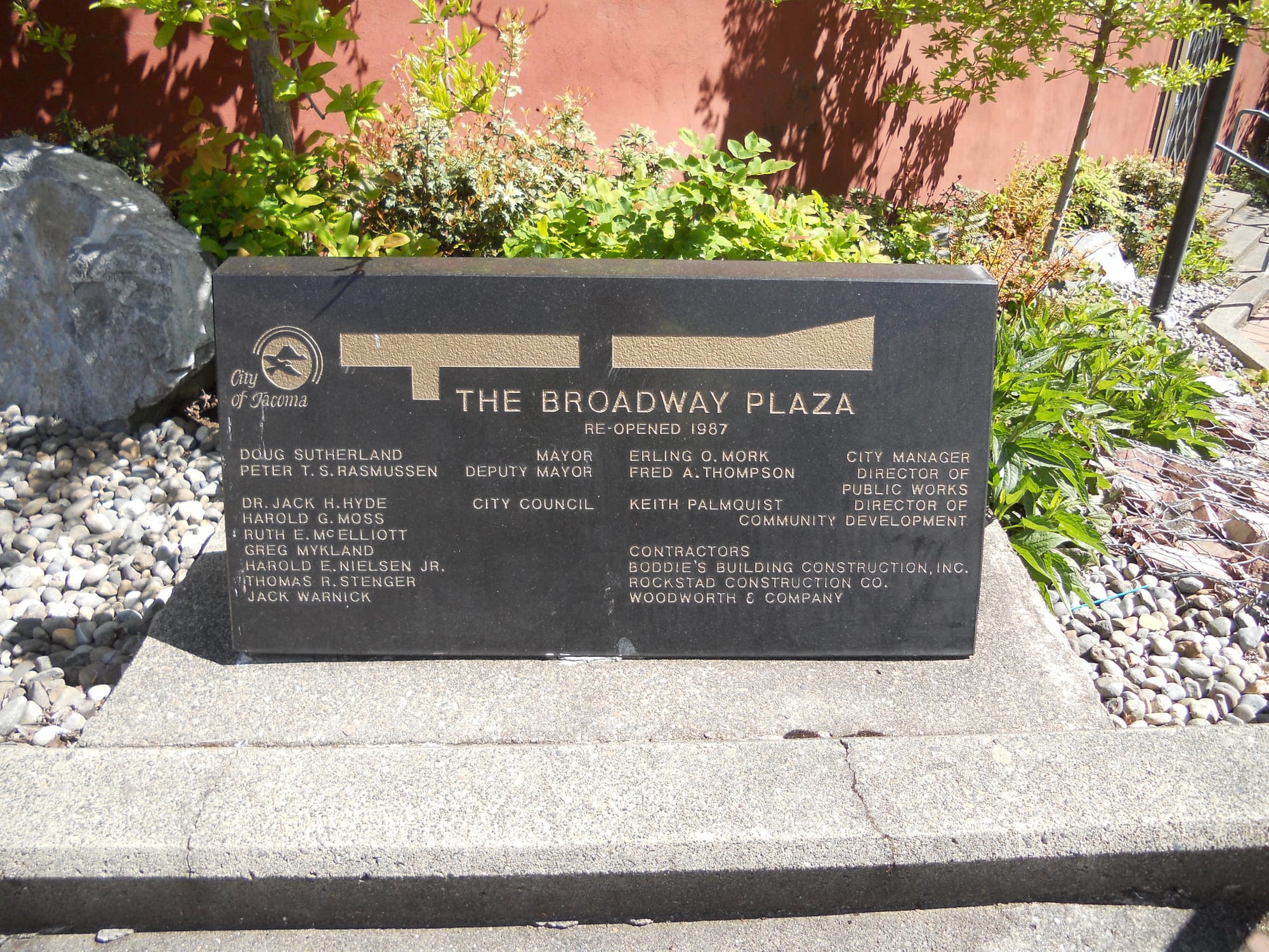 Urban explorers, or really any attentive pedestrians, are bound to discover glimpses of the past that we tragically destroyed in pursuit of a city designed around automobiles. One such example with an ironic history is a plaque along Broadway in Tacoma, placed in 1987 to commemorate the reopening of Broadway to car traffic. It is, however, never too late to fix the mistakes of the past, and the sooner we do so the less opportunity we have to build even worse systems upon them. There are many benefits to reintroducing such a pedestrian plaza to Broadway that I want to explore here.
