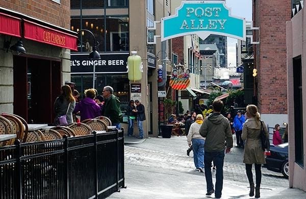 Cars are loud, dangerous, and polluting. It’s no wonder that Seattle’s busy one-way streets have less of a welcoming environment than Post Alley. Why is that? It’s the cars. And since we won’t be changing our street designs any time soon — which should flip our Downtown one-way highway streets to two-way streets — we might as well utilize what space we have to flourish as car-free environments.