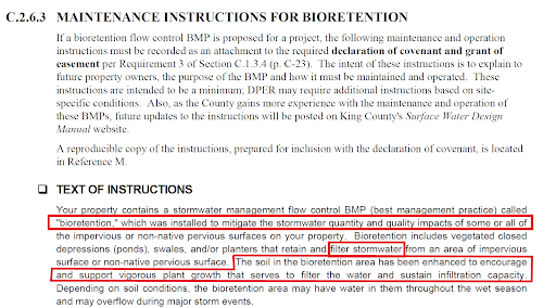 Later in the year 2019, I spoke with John Taylor, King County Department of Local Services, and he disclosed that Water and Land Resource Division (WLRD) staff met in 2014 and vetted among themselves and determined that King County would not allow bioretention to be used within their jurisdiction, which is unincorporated King County.