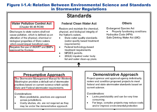 The below excerpt comes from the 2019 DOE Stormwater Management Manual and includes an explanation of the Washington State law that requires all jurisdictions to use DOE approved water quality facilities.