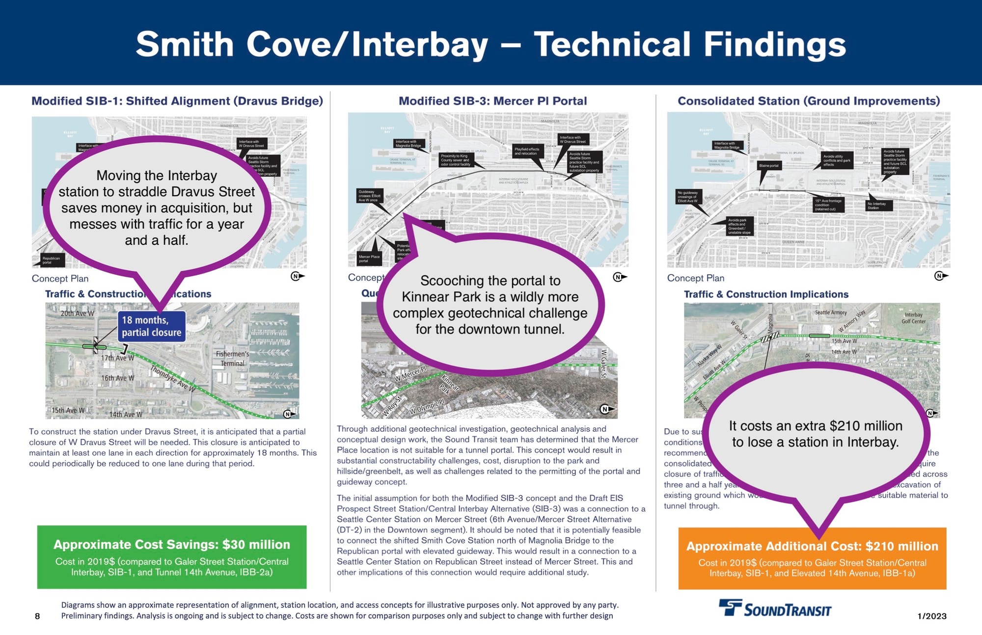 Corrections and updates: This article was updated on January 23 with additional information that Sound Transit provided, including the location and duration of road closure on 15th Avenue instead of Magnolia Bridge, costs for the consolidated Interbay station, and the dates for Sound Transit meetings.