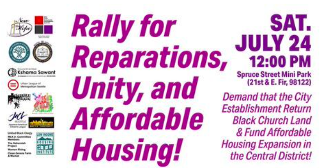 Seattle also has a history of discriminatory housing policies harming residents who are Black, Indigenous, and people of color (BIPOC). The recently rally for “reparations, unity, and affordable housing” was spurred by an op-ed published in the Seattle Times by Reverend Robert Jeffrey Sr. of New Hope Missionary Baptist Church.