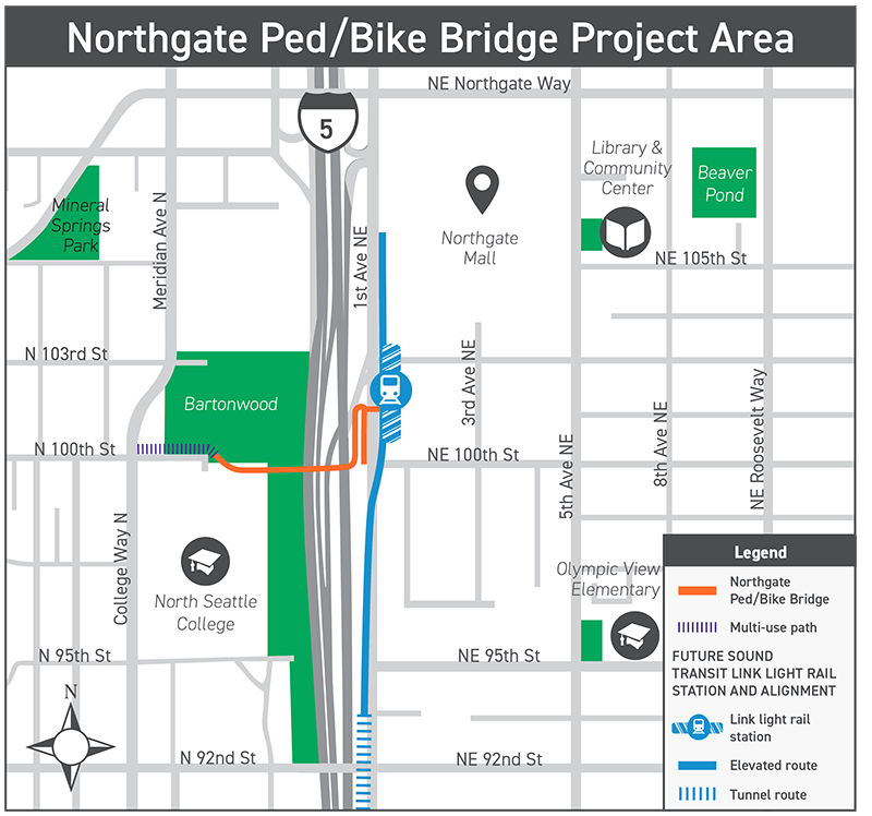 The project represents a significant step forward to literally and figuratively bridge communities near Northgate, a designated Urban Center. I-5 has long been an impediment to people walking and biking, with the best nearby option being the N 92nd St bridge. It is a mediocre option, but better than N Northgate Way, a frightening experience for anyone on foot or bike.