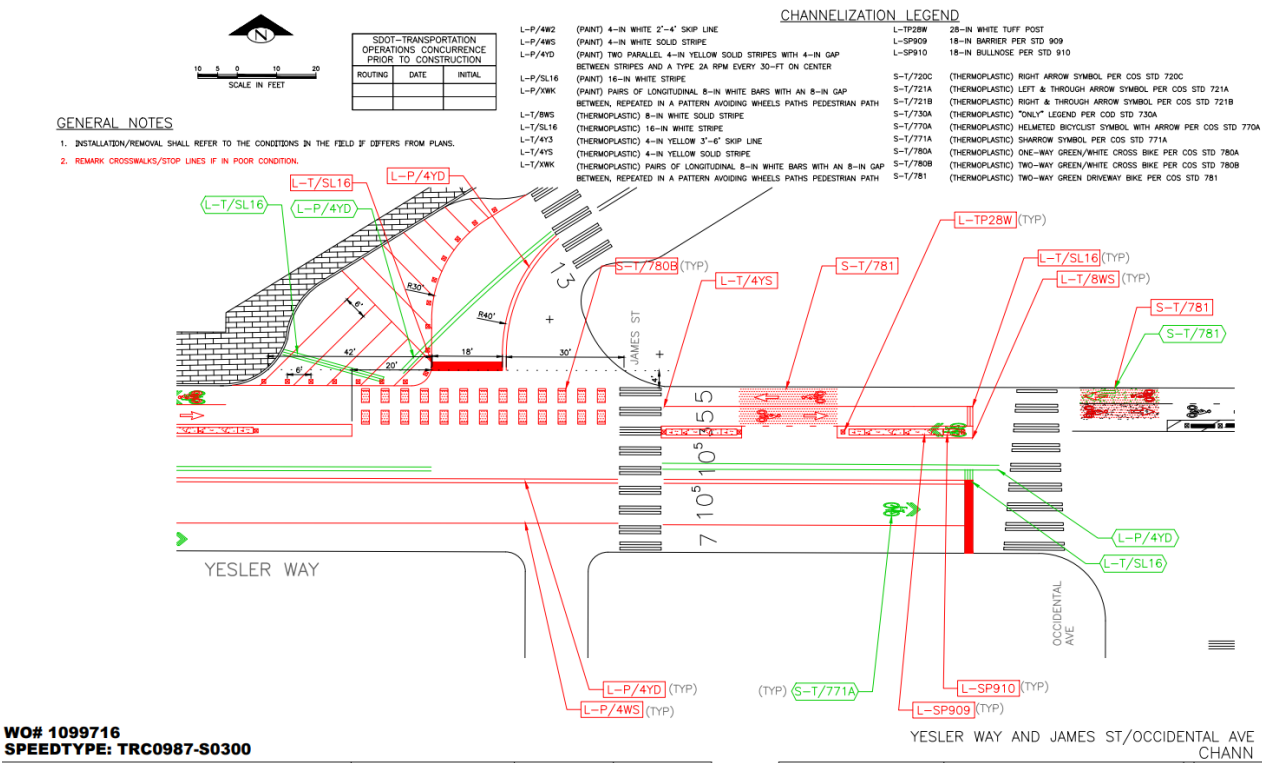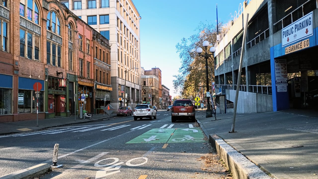 “This project is moving forward, but we’re exploring using FIFA-related funding to make changes to the signal at 1st & Yesler first. Signal changes could benefit the protected bike lane (PBL) project as it would not require new turn restrictions and also improve safety for pedestrians,” SDOT spokesperson Amy Abdelsayed told The Urbanist. “Should the signal project be feasible it would be constructed in advance of the PBL. As signal design proceeds, we will have a better information on construction timeframe.”