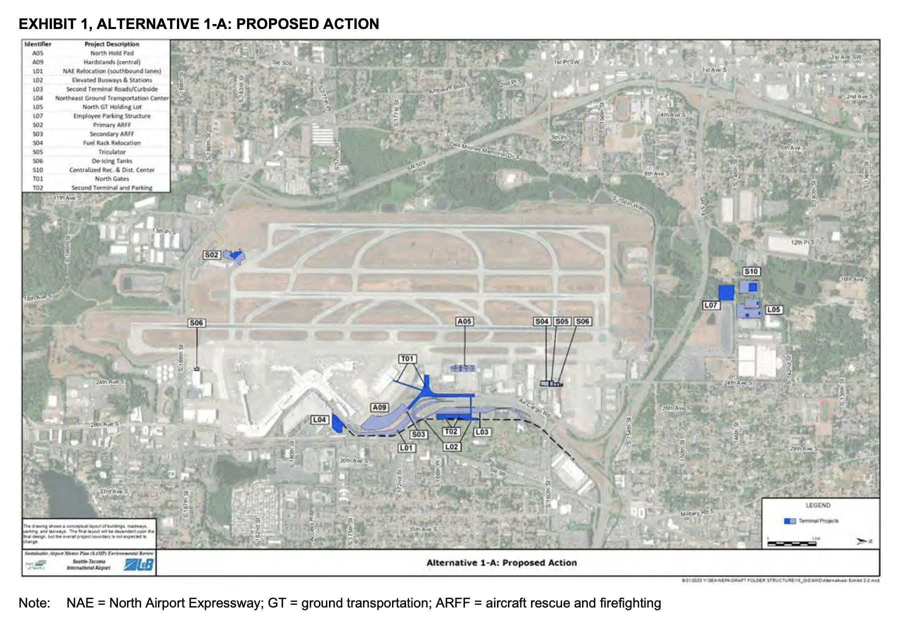 Formal design and engineering of the proposed near-term projects could begin as soon as this year, but the earliest date for construction would be sometime in 2026. Construction of new and expanded buildings is normally a multi-year process and there is a high likelihood that the new terminal would open among the last of projects given the phasing and relocation of other facilities to accommodate it. As for the environmental process, the Port of Seattle expects to conclude that this year in phases.