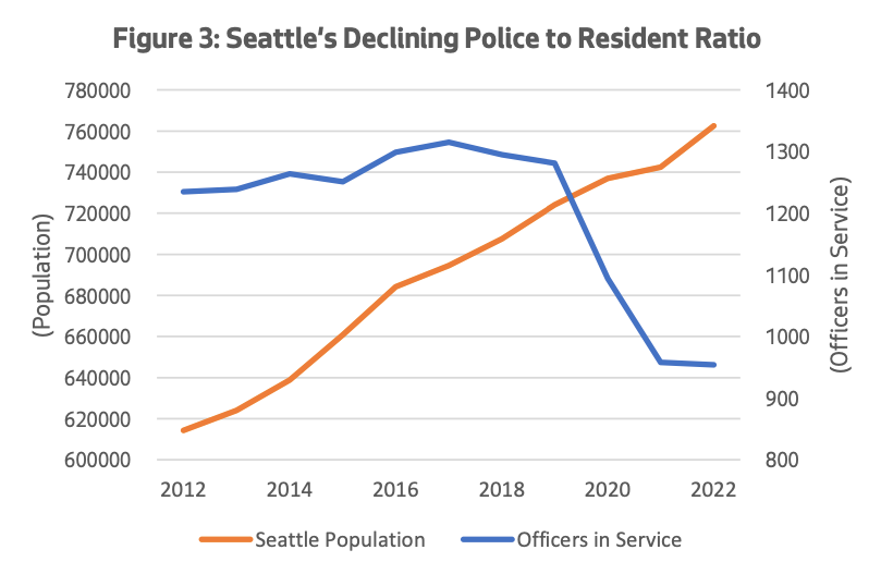The hiring bonuses are a component of a police hiring and incentive plan proposed by Mayor Bruce Harrell intended to increase SPD’s number of trained and deployable officers from 945 to 1,450 in the next five years. This increase in police officers would surpass the number in SPD’s ranks in 2013-2019 during which the department was staffed by about 1,300 officers. Mayor Harrell has called the increase necessary in order to keep up with the city’s population growth and an increase in crime following the Covid pandemic in keeping with national trends.