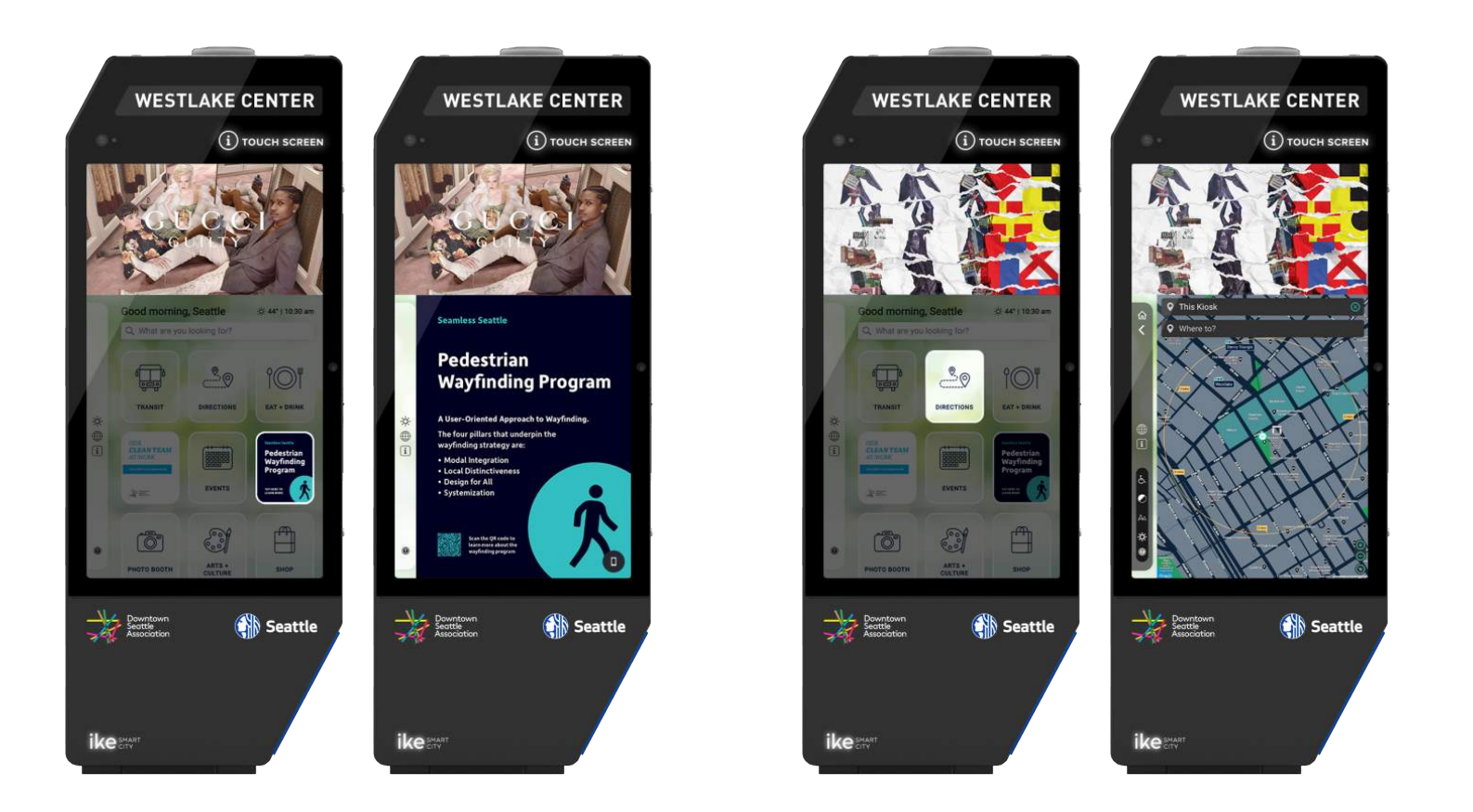 The Seattle City Council is officially taking up a request from the Downtown Seattle Association (DSA) to deploy dozens of digital information kiosks on the city’s sidewalks. The interactive kiosks, which will come equipped with free Wi-Fi, digital wayfinding, and the ability to call for assistance, will spend most of their time displaying ads. The bulk of the revenue generated by those ads is set to return to the DSA, to fund operations of the Metropolitan Improvement District (MID) and the MID’s Downtown Ambassadors who patrol downtown providing cleaning and public space activation services.