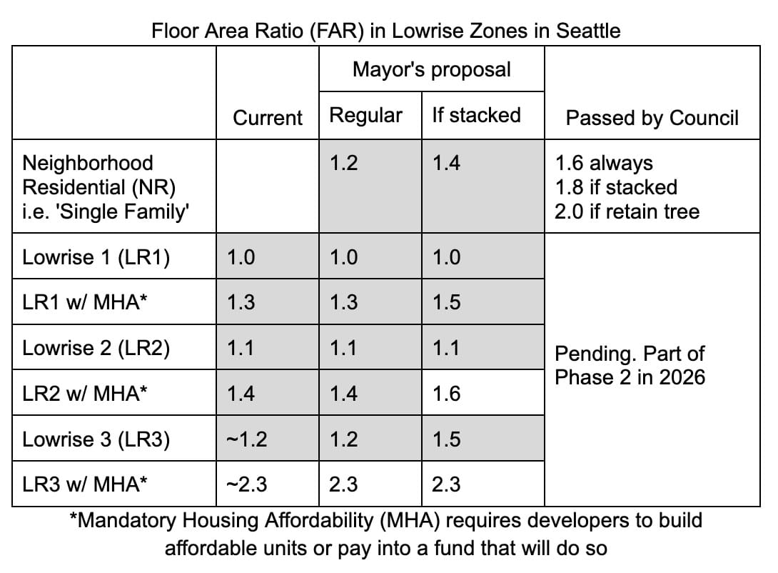 Heeding advocate calls to go bigger, the Seattle City Council passed a series of amendments to remove those city-imposed density limits and enact incentive bonuses for stacked flats. A number of amendments increased housing capacity with little or no strings attached.