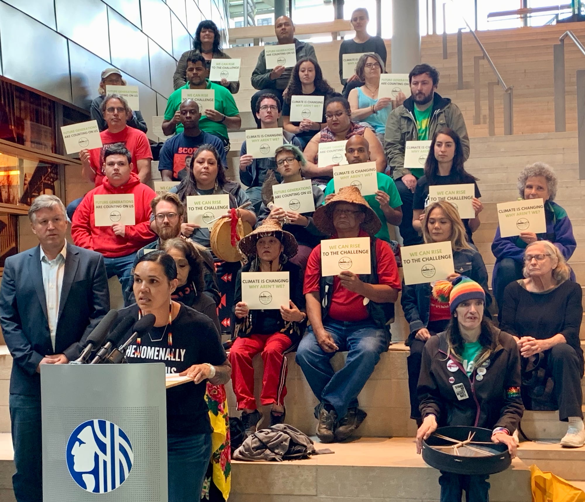 “We have to double down our work, and then do even more,” said Councilmember Mike O’Brien during a press conference before the council vote in which he was joined by local and national climate activists including LaDonna Brave Bull Allard, founder of Standing Rock Sioux Camp, which attracted international attention for its protests against the Dakota Access pipeline.