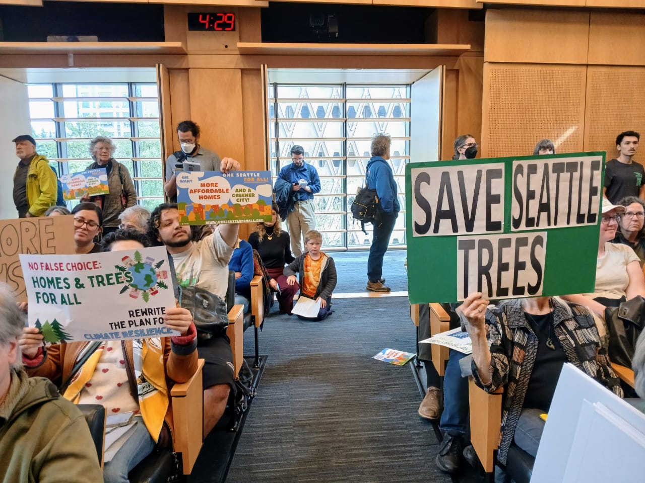 The issue of tree retention has become a lightning rod in discussions of Seattle’s growth plans, and multiple councilmembers put forward amendments touching different aspects of tree policy. Most of these came from Dan Strauss, who shepherded the city’s tree preservation ordinance in 2023 that has now come under fire for not doing enough to protect trees during development.