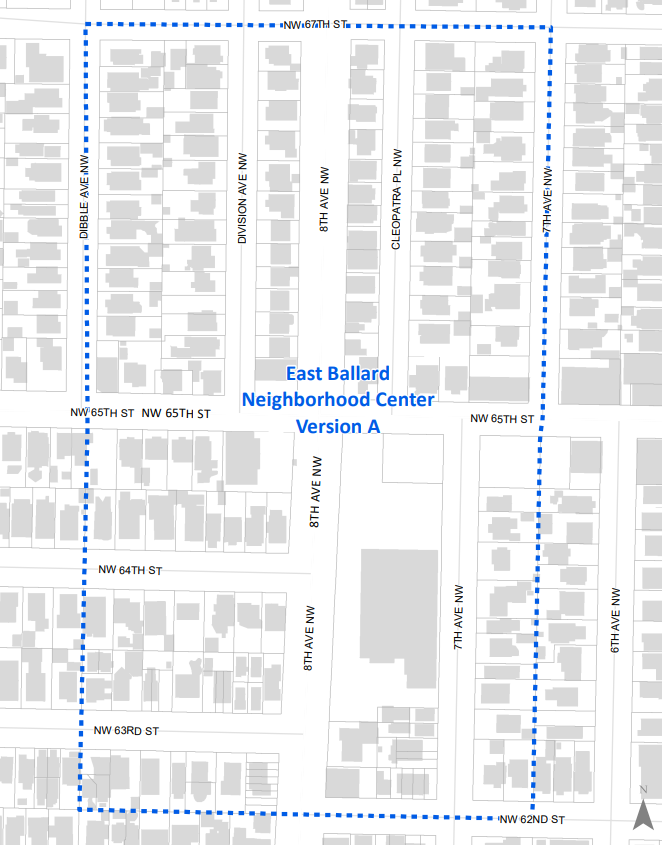 District 6 Councilmember Dan Strauss has proposed three different versions of tweaks to the proposed neighborhood centers in his district, all of which he says maintain a consistent level of increased housing capacity. Strauss also proposes a new district neighborhood center in “East Ballard” — centered around 8th Avenue NW.