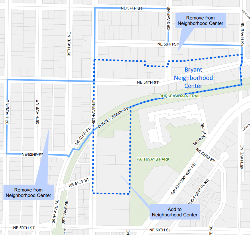 Residents in Bryant — and the nearby in the even more exclusive Hawthorne Hills neighborhood — had pushed back vociferously on that center. Among the arguments against increased density in the area was the idea that the 39th Avenue NE neighborhood greenway would be negatively impacted.