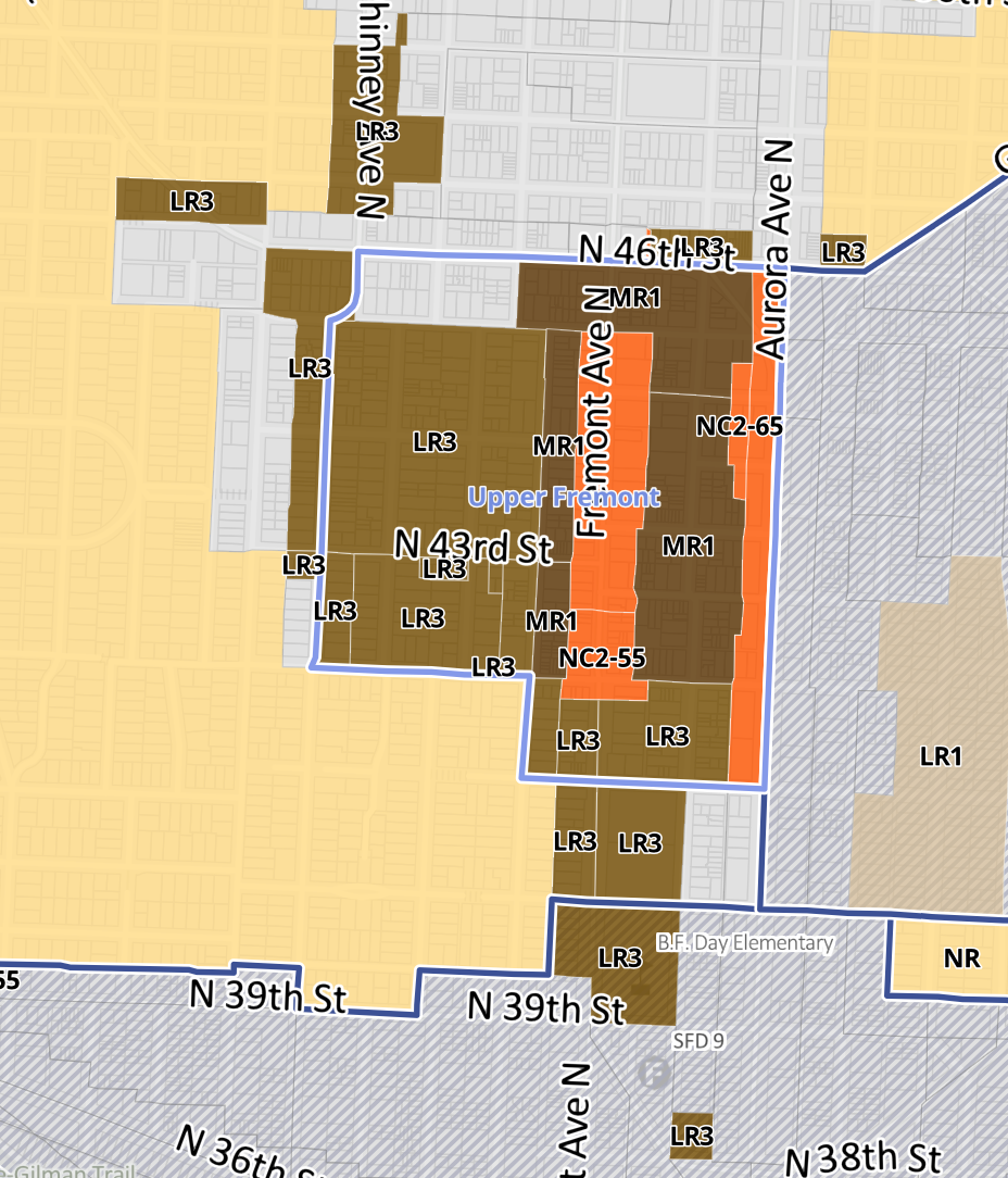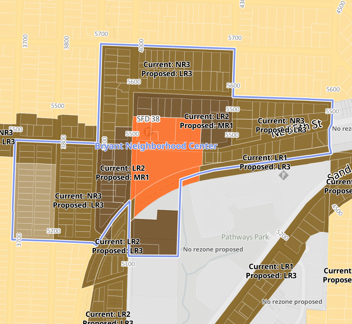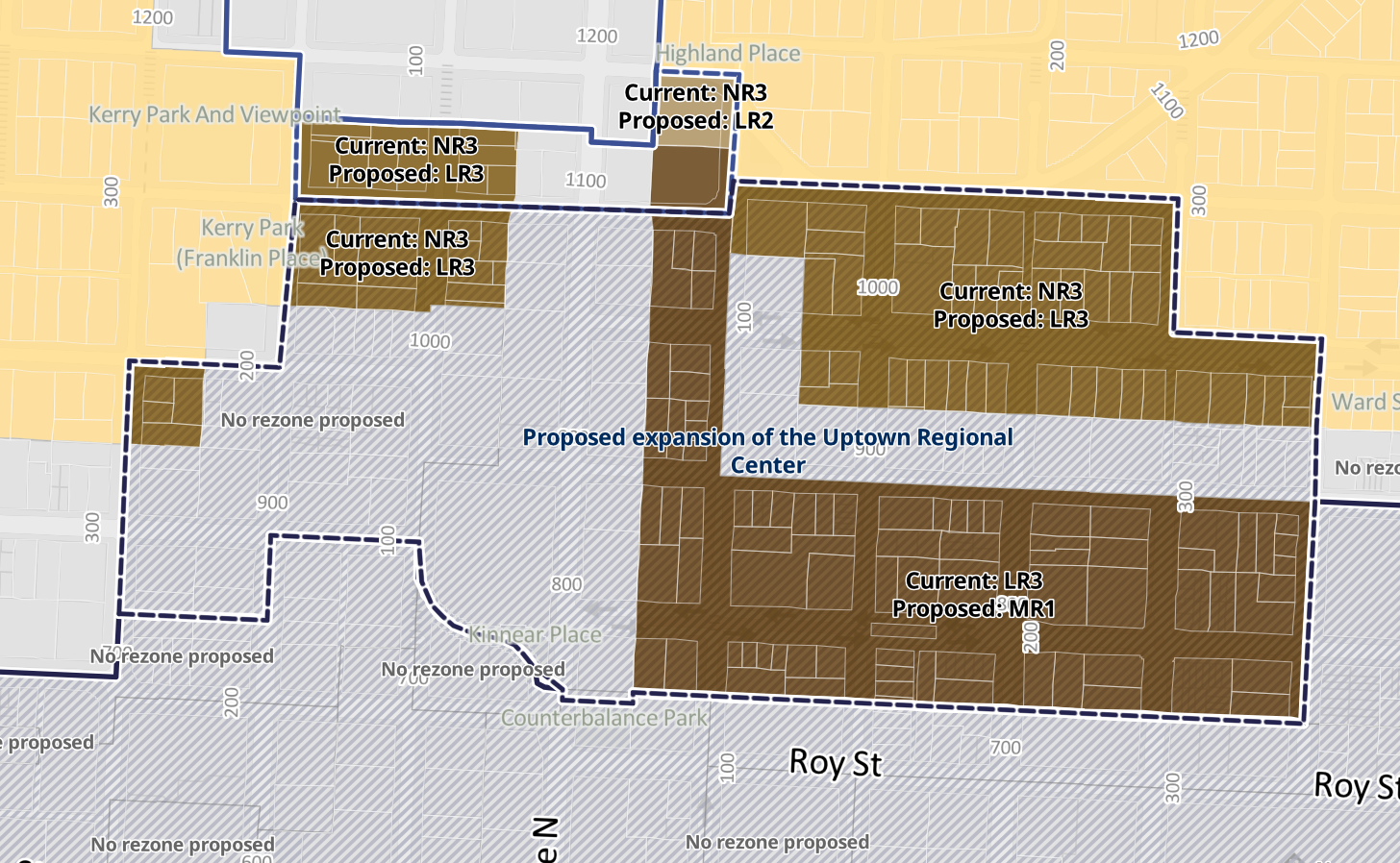 Separately, OPCD is proposing to upzone various pockets of the proposed Uptown Regional Center expansion area, Greenwood, Central District, Graham, Upper Queen Anne Urban Center expansion areas, and new Upper Fremont, Madison Valley, Bryant, Mid Beacon Hill, and Wedgwood Neighborhood Centers to MR1.