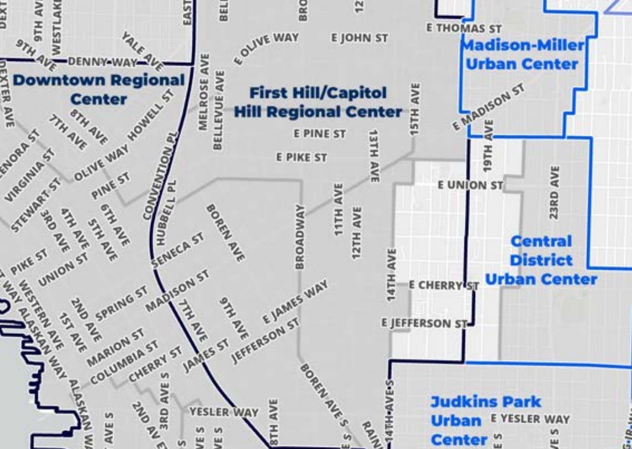 The council did make one substantive change to the plan before its final vote, removing a small area west of 18th Avenue that had been set to be added to the First Hill/Capitol Hill Regional Center. Filling in a “donut hole” of lower density within one of the city’s most transit-rich neighborhoods had been proposed by the Harrell Administration, but Comprehensive Plan Committee Chair Joy Hollingsworth raised concerns about lumping that area in with Capitol Hill’s regional center instead of the Central District urban center, which will extend east of 18th. Keeping a boundary at 18th was seen as essentially splitting this historically Black neighborhood in two.