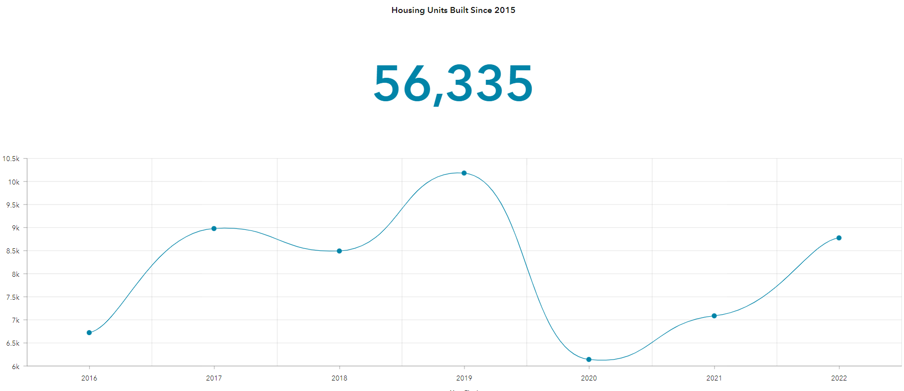 For official study purposes, Alternatives 2, 3, and 4 will study the implications of adding 100,000 new housing units by 2044, but Alternative 5 would study adding 120,000 new housing units. On an annual basis, that works out to an average of 5,000 net new units per year in those three scenarios or 6,000 per year in Alternative 5, which is a slower pace of growth than Seattle has experienced in recent years. On average, Seattle has built about 8,000 new housing units per year since 2015.