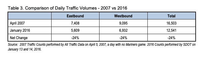 But when the Move Seattle levy passed, and the city prepared to submit an application for Federal dollars, a traffic study had not been completed on Lander since 2008. The 2016 traffic study showed that volumes on Lander were actually down by nearly 25%–only around 12,500 cars a day were using the street, down from 16,000. But when Senator Maria Cantwell announced the awarding of the $45 million FASTLANE grant, the press release contended that “current congestion at Lander Street costs the Washington economy $9.5 million per day or $3.4 billion a year”–an outlandish claim for a street that was recorded as having as much traffic as a busy neighborhood arterial. But here vehicle traffic is literally valued more than other types of traffic.