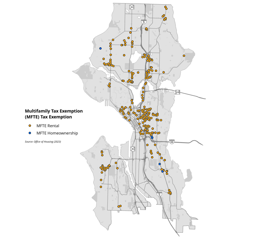 Across its six iterations, Seattle’s Multifamily Tax Exemption (MFTE) program provides nearly 7,000 homes at below market rents. Landlords receive a property tax break in exchange for setting aside a share of units as affordable — typically 25% in Seattle’s current program. The program is voluntary and landlords can opt out of the program, forgoing the tax break and returning units to market-rate if they so choose. The mayor’s proposal is the seventh iteration and often referred to as MFTE Program 7 or P7.